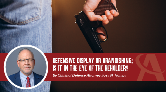We frequently see allegations of brandishing a firearm in “road-rage” cases where one driver feels threatened and holds up a gun to get the other driver to back off.